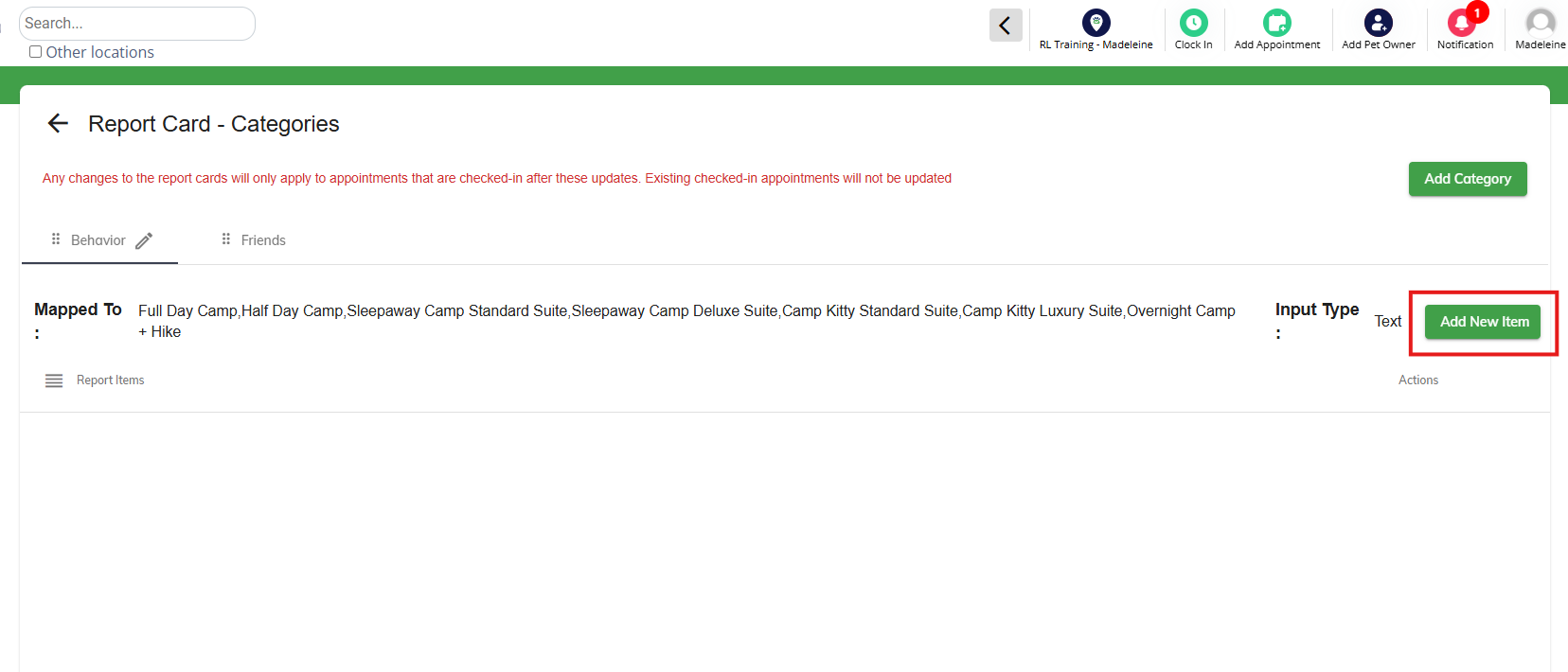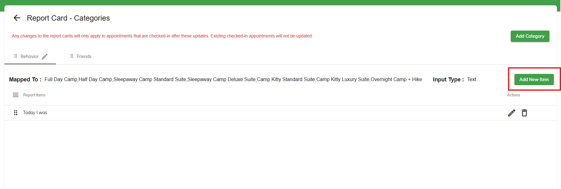 4. Continue adding items by clicking Add New Item until all questions are added to the report card categories.
