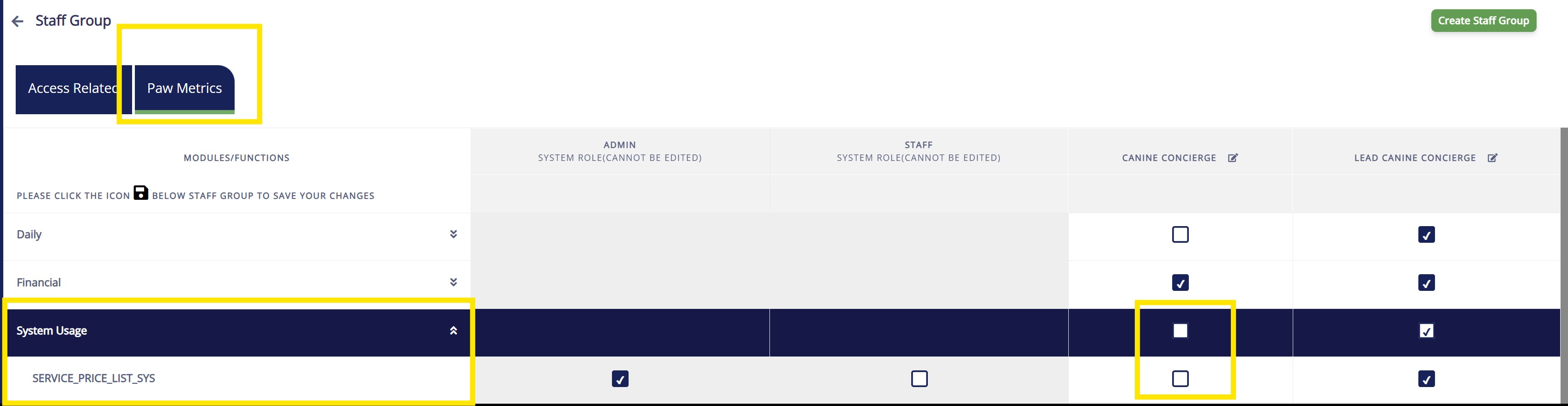 To check which staff group you have your employees at you can do this by going to settings>staff management>under the group section you will see what group they are listed at. You can select the pencil icon to the right to change their group.