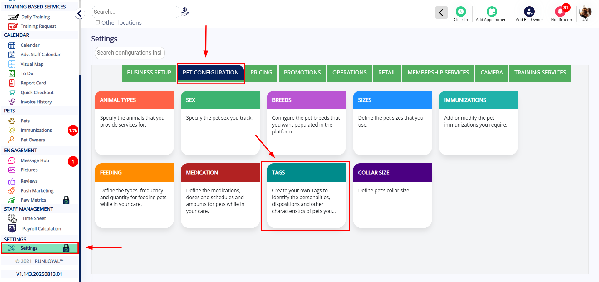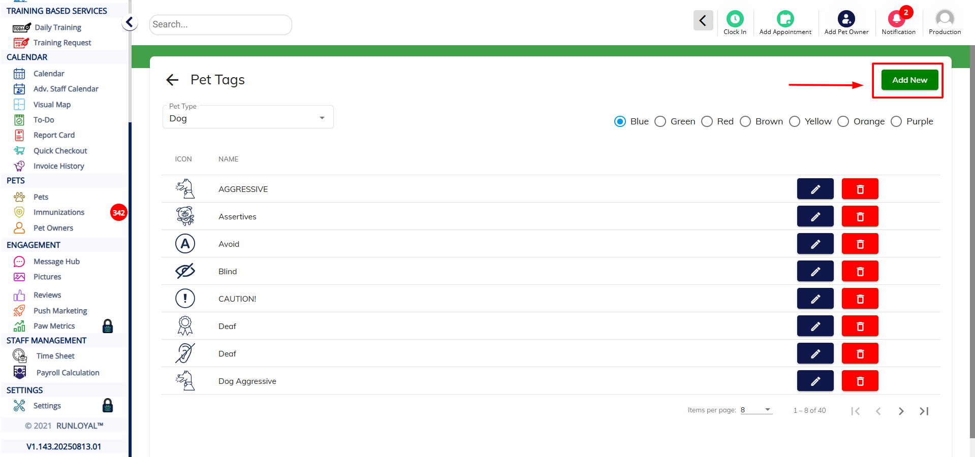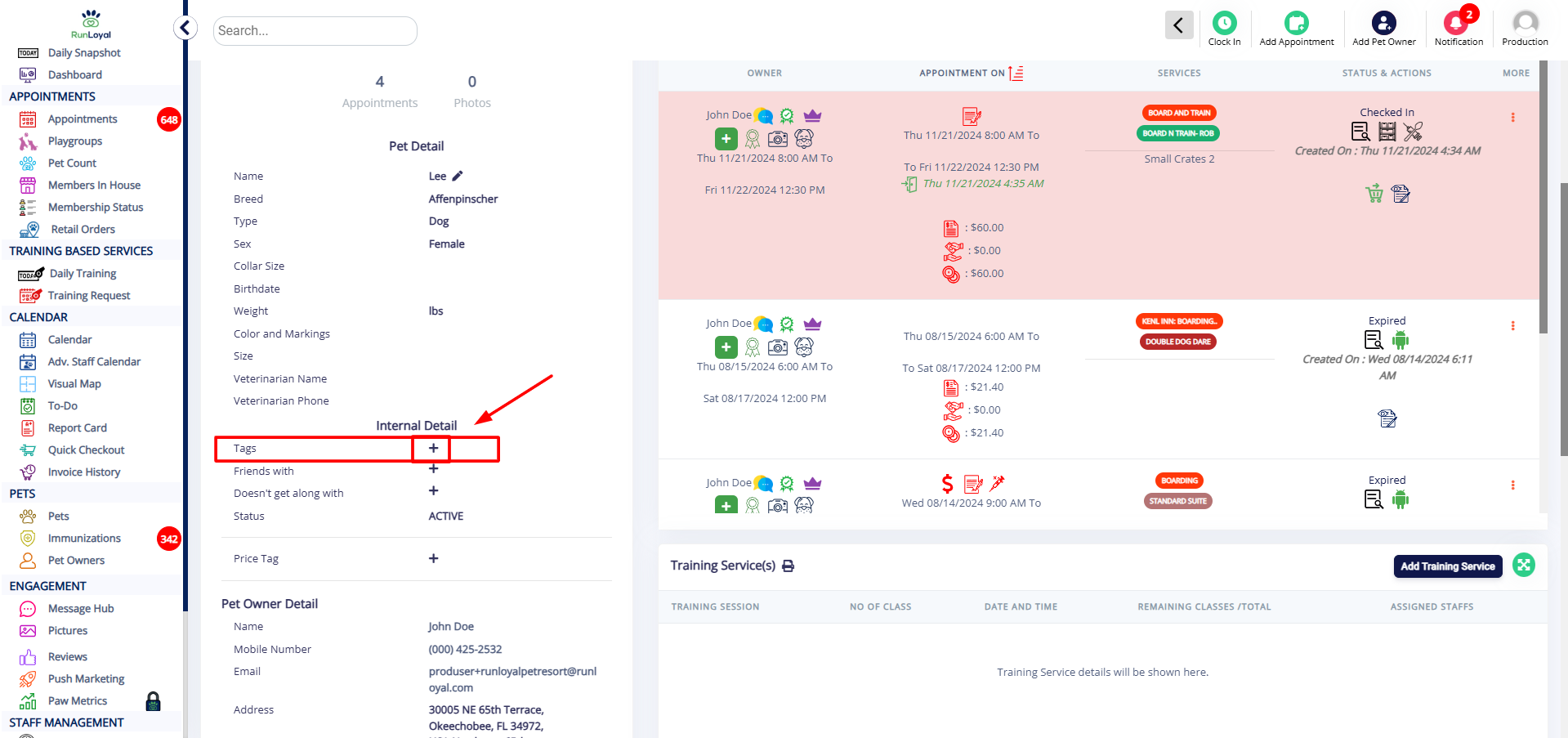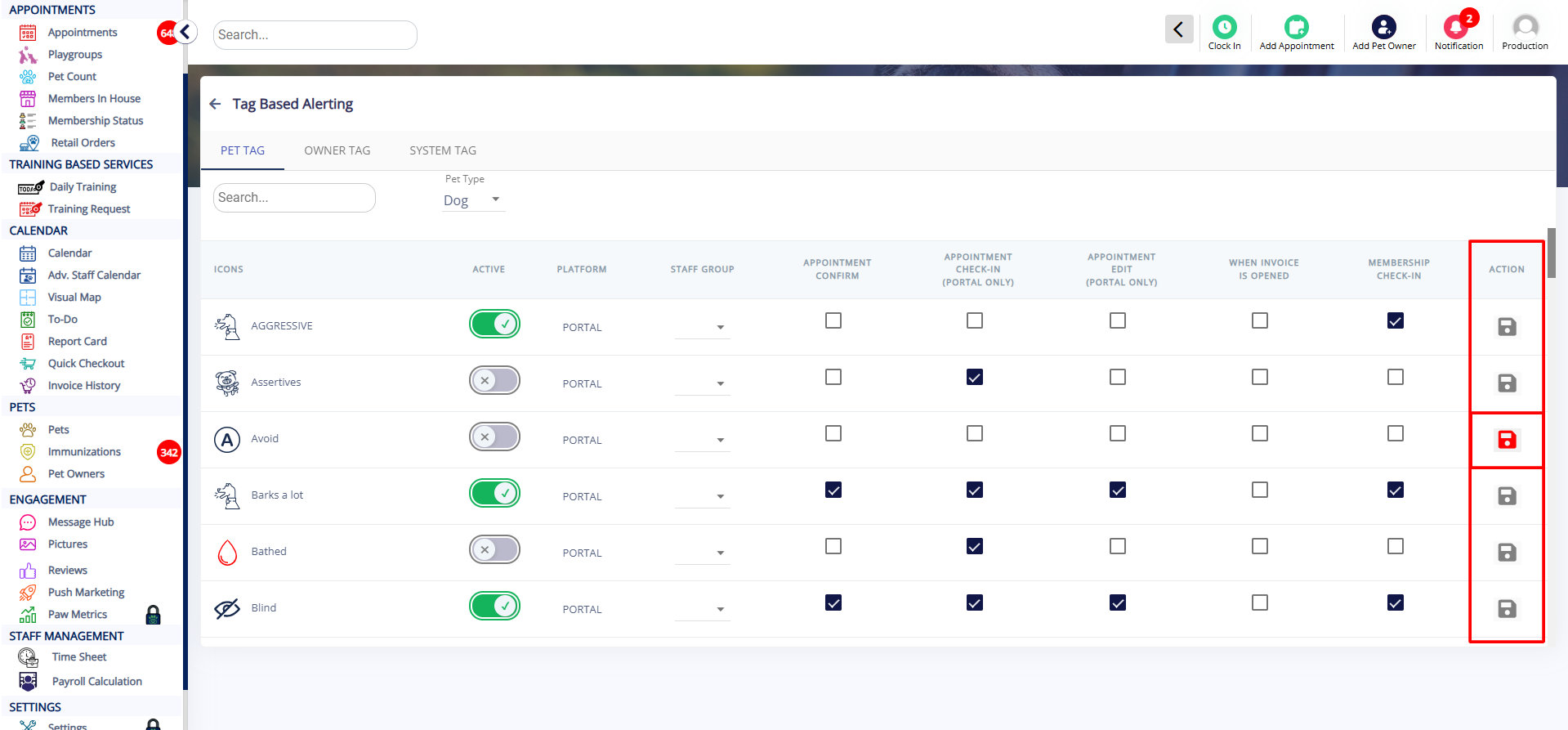 Tag-based alerts help you quickly identify important information about a pet or a pet owner whenever their profile or appointment is accessed. Both pet and pet owner tags are internal to your operation and not visible to your pet parents.