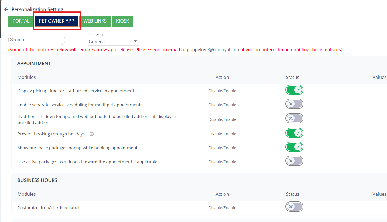 This ensures pet owners will see a popup message if they attempt to book web appointments that span holiday closures.