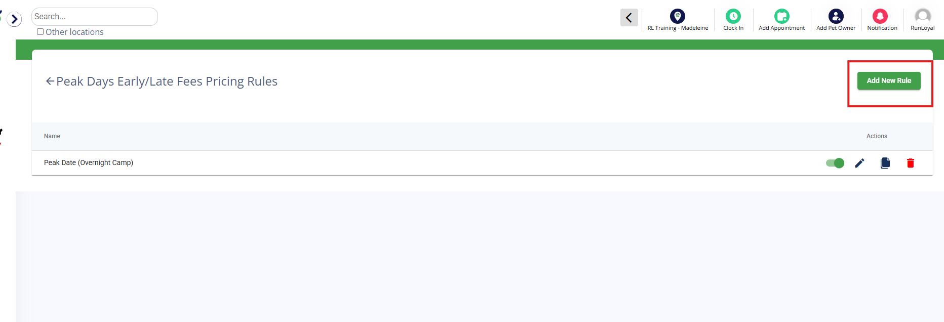 - Settings > Pricing > Peak Days / Late/Early Dropoff