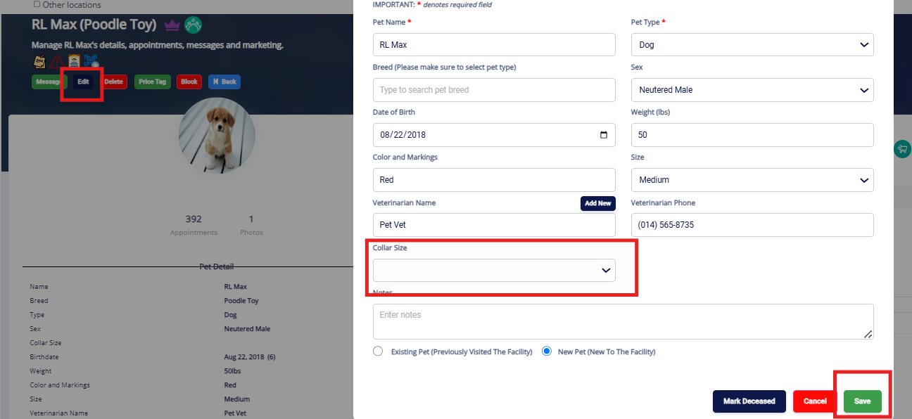 10. Select the Pet Appointment → Click on Print Collar in the overflow menu