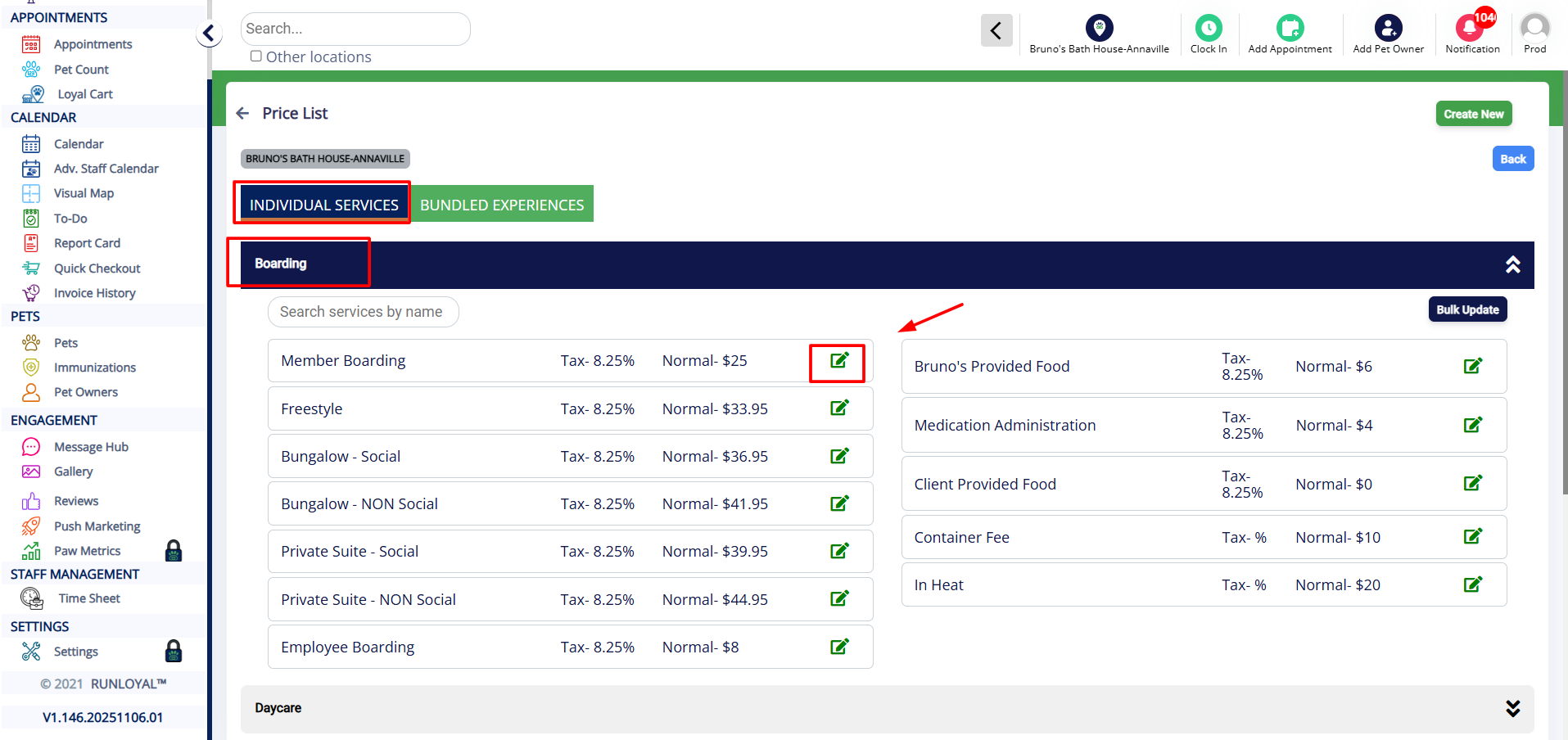 - Click the Edit icon next to the service