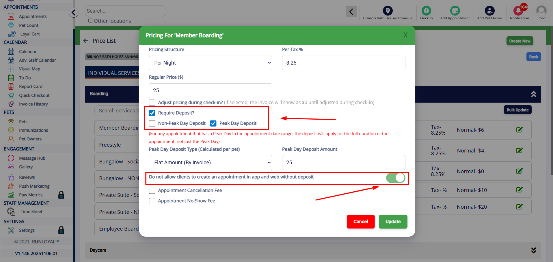 - Ensure the toggle “Do not allow clients to create an appointment in the app and web without deposit” (highlighted in the screenshot) is turned ON