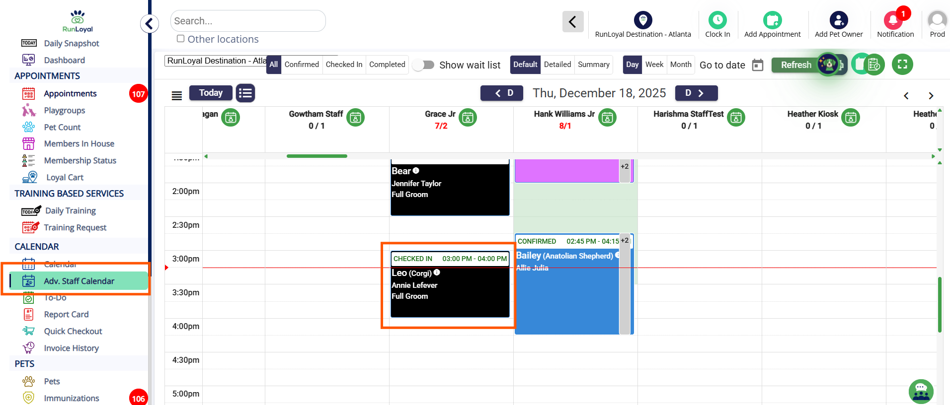 1. Navigate to the Advanced Staff Calendar module and select the pet’s appointment.
