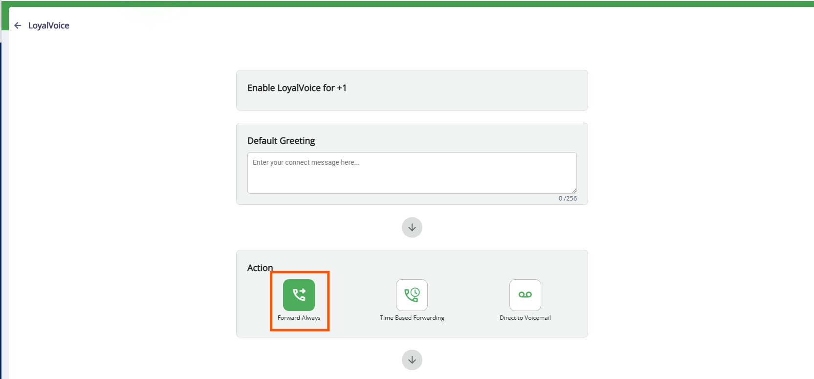 LoyalVoice allows your existing 2-way SMS number to receive incoming phone calls or make outbound phone calls from your business portal. You can choose how those calls are handled. You can forwarded to one or more phone numbers, routed based on business hours, or sent directly to voicemail. All voicemails are available in the Message Hub for easy access and tracking.
