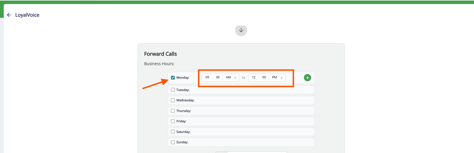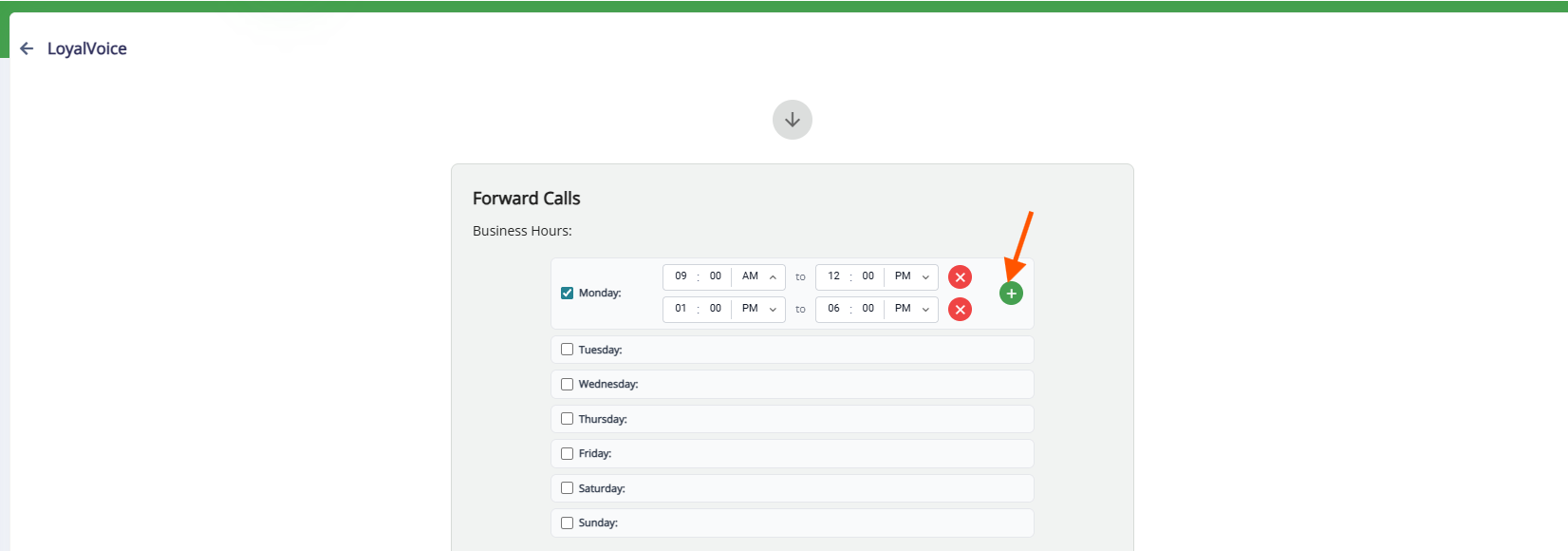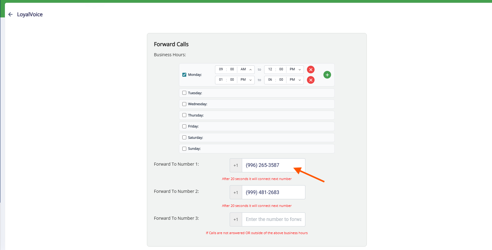 4. Assign the phone number(s) to forward calls during those hours