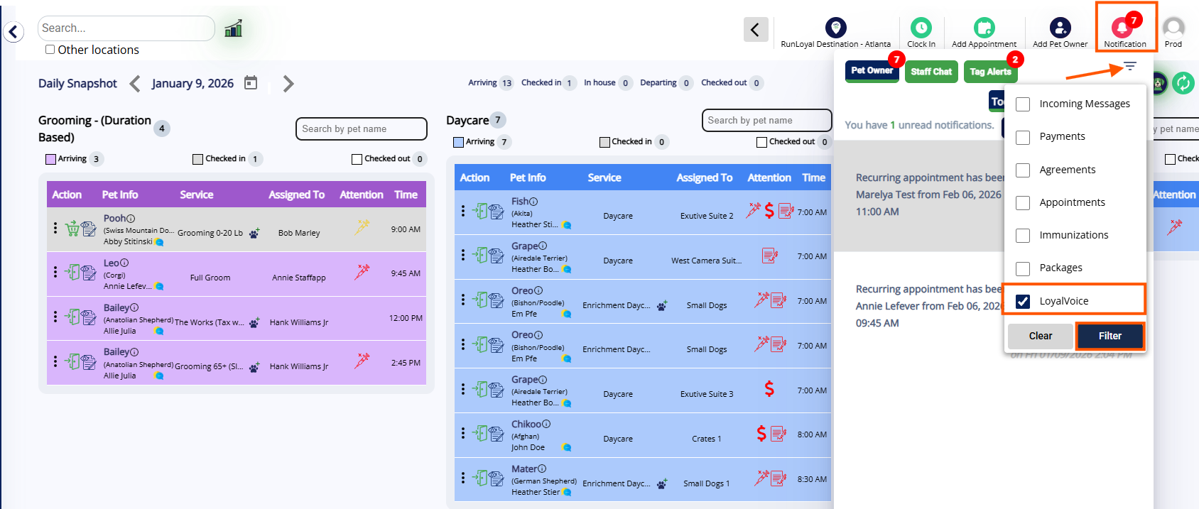 1. Click on Notifications, select the filter icon, and check the LoyalVoice option