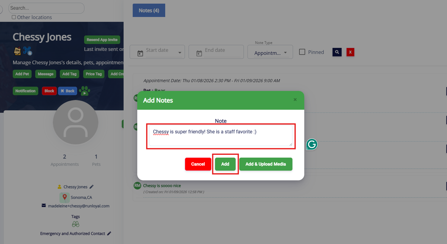How To Add a Pet Owner Staff Note on an Owner Profile