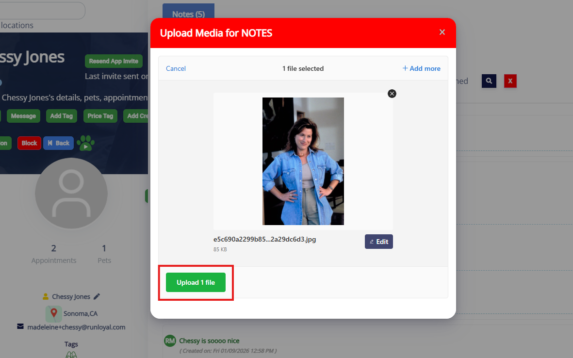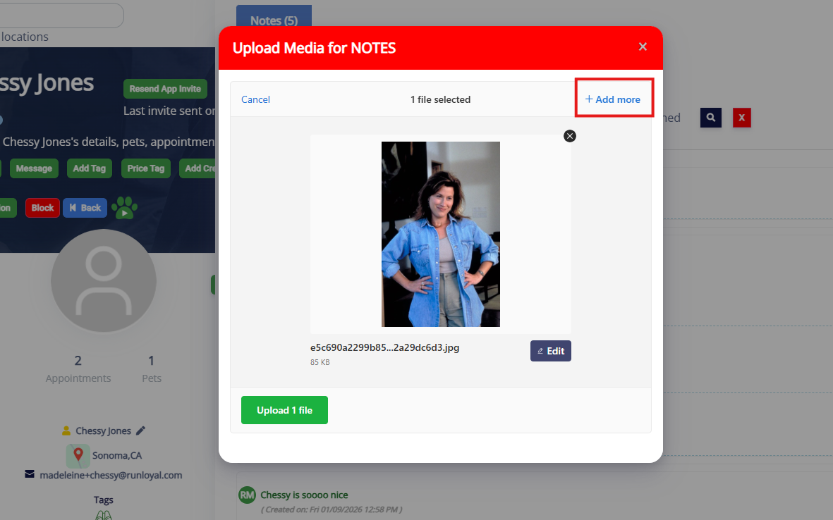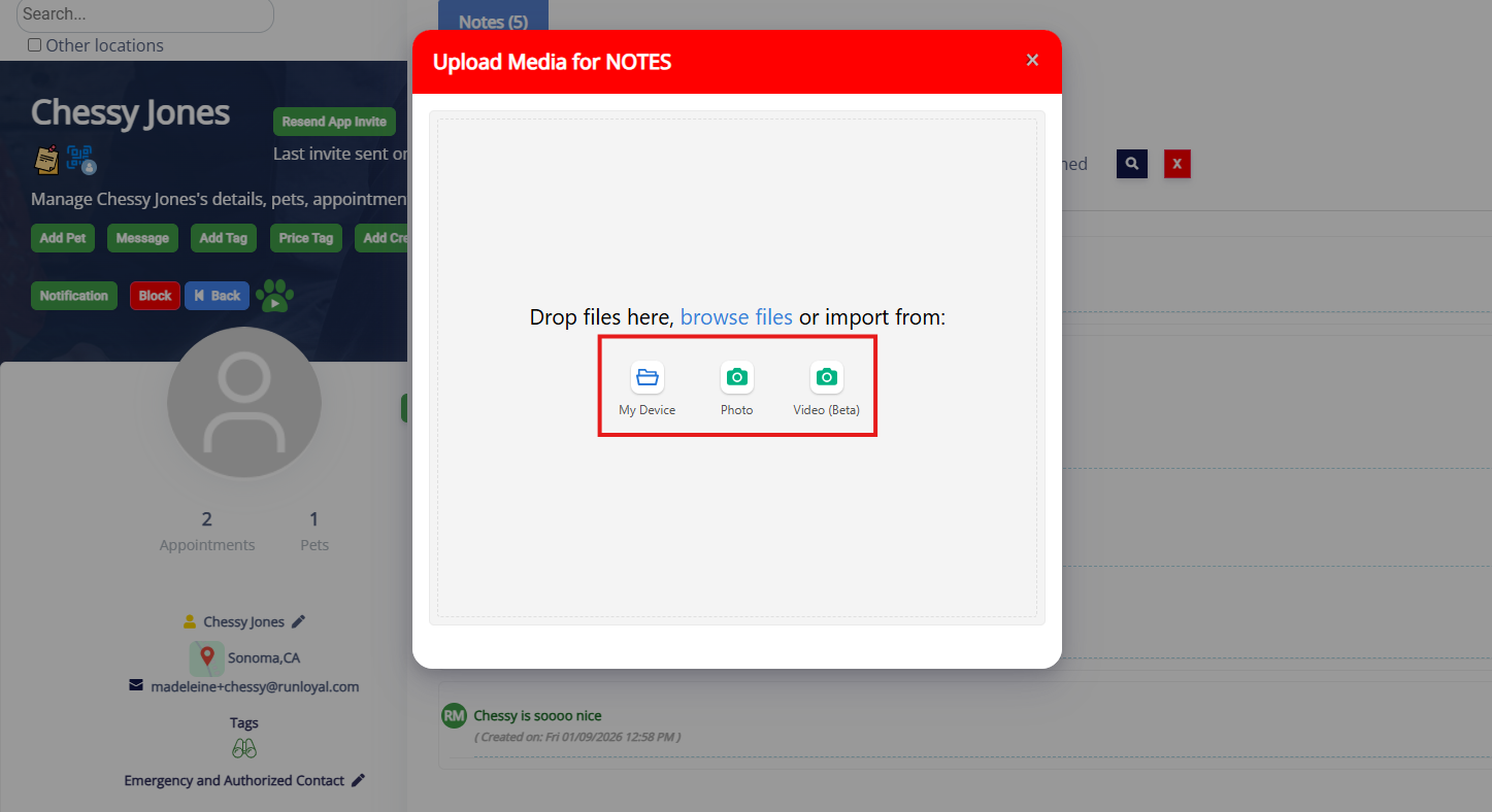 1. If you would also like to add a photo while creating or editing a note, click Add & Upload Media.