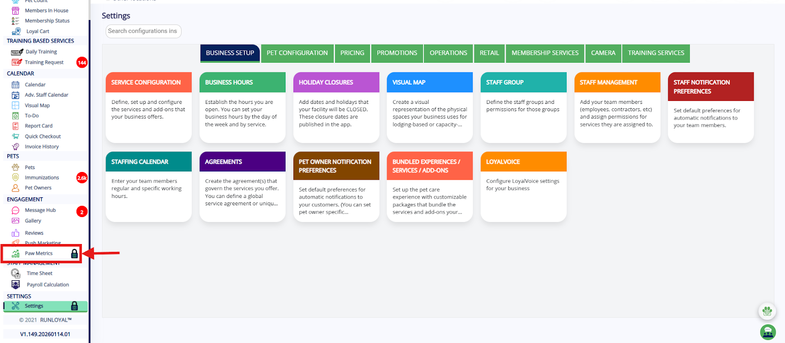 Pawmetrics is the reporting section of the RunLoyal platform. It allows users to access, navigate, filter, and manage various reports related to pet owners, packages, and other operational details. You can find more information and a guide on how to use Pawmetrics here: https://www.loom.com/share/1384c370b4e144a3850c5792ad8bb459?sid=d92574fb-0bf5-4307-b8d1-3ec1d257c762.
