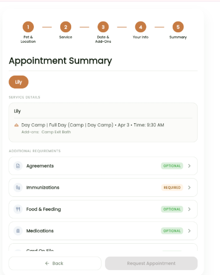 - This ensures all bookings are properly linked to a customer account, keeping records organised for both the business and the pet owner.