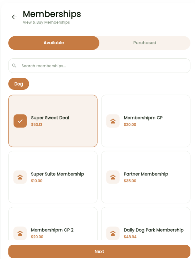 - Purchase Packages & Memberships — Browse and buy available plans directly through the portal.